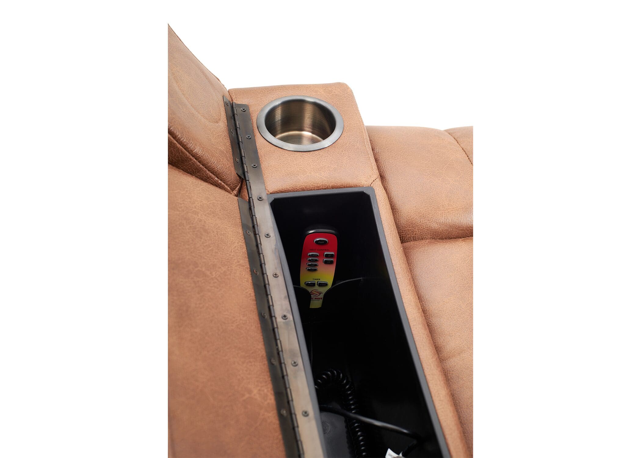 Take a vacation from your busy day in The Rhea. It offers an overstuffed back, plush chaise pad and an open arm design that holds numerous standard features that include two cup holders, two storage compartments, and a USB port.